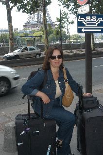 I made it back to the apartment and unloaded the luggage in the foyer. Thank God the elevator was in working order. I knew Vicky was not having fun, so I rushed back to the drop off point. There she was sitting on the heap and looking like she was in a foul mood. “WHERE have you been?” she asked. I knew I was going to get this welcome. I pulled the camera out and took pictures of her to lighten the air. We laughed about our situation – but not without one final argument over the exact course as to how we were going to get back home. Most of our arguments are over directions. Vicky fired the first barrage: “I think we should go over the Pont de l’ Alma instead of through the underground passage way.” I tried to point out that the pedestrian bridge was the shortest direct route and that the Pont de l’Alma was actually an uphill walk from where we were. But I backed down and let her choose – Vicky was not enjoying this and I wanted to lessen her pain.