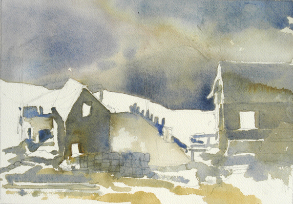 "Monhegan Fog", by Robert Leedy, 2008, watercolor on Arches 140 lb. Cold Press paper, 8.75" x 11.5" (Unfinished)