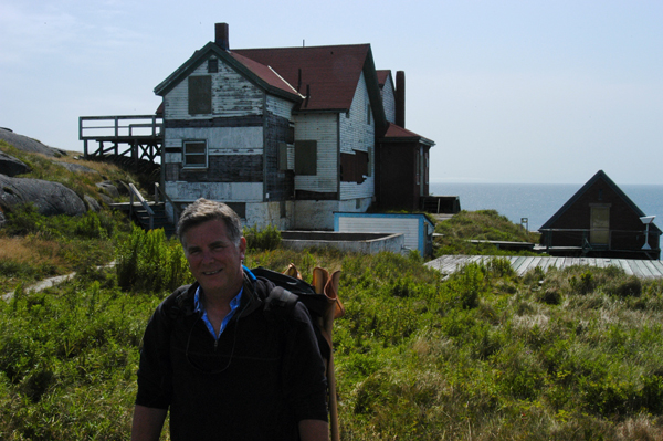 He asked me if I had been over to Manana. Manana is a small island which acts as a barrier for Monhegan’s harbor. It is uninhabited. A Coast Guard station that was once manned is now automated as a fog horn and the building is boarded up. It is visible only from the other side of the island. I told him I had not but I wanted to get over while I was there. He said he could take me in his dinghy but it was not a good time given that there were thunderstorms not far off in the southwest.