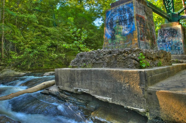 I spent another afternoon experimenting with HDR imaging. Michael Perry took me to see the covered bridge but it was too hazardous at this time of the year – with steep slopes, dense foliage and groves of poison ivy – to navigate our way to a good vantage point. I found the above, nearby scene just as interesting – perhaps more so. I’m learning what subject matter translates well. I liked the graffiti and boosted the color saturation to enhance it. I normally wouldn’t do this in “regular” digital images but HDR seems to enjoy this kind of treatment.