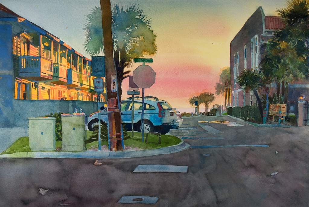 “Beach & 10th Street”, by Robert Leedy, watercolor on Arches 300 lb. Cold Press paper, 19″ x 28.25″