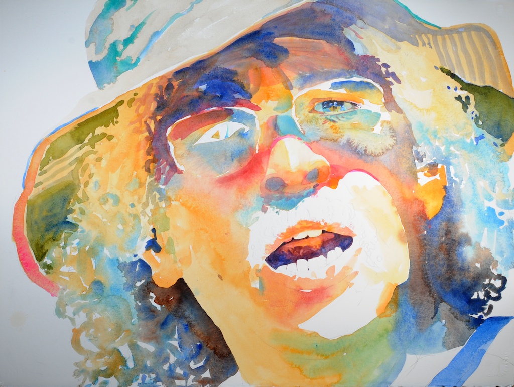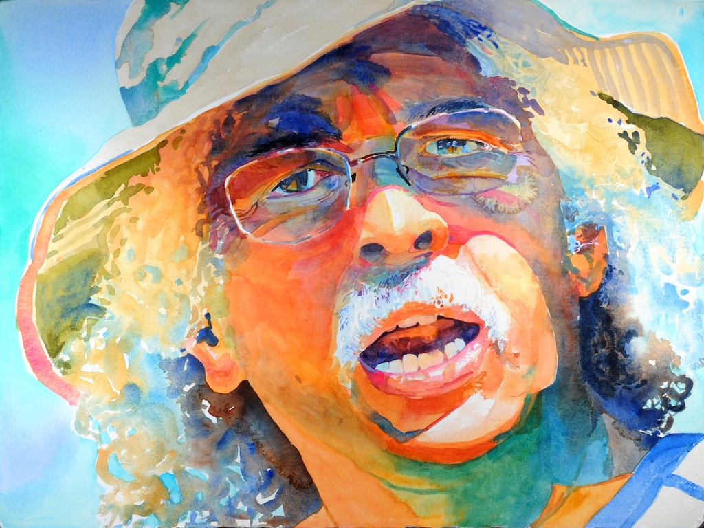 “Pablo”, by Robert Leedy, watercolor on Arches 300 lb. Hot Press paper, 22.75″ x 30″, Collection of Pablo Rivera, Neptune Beach, Florida