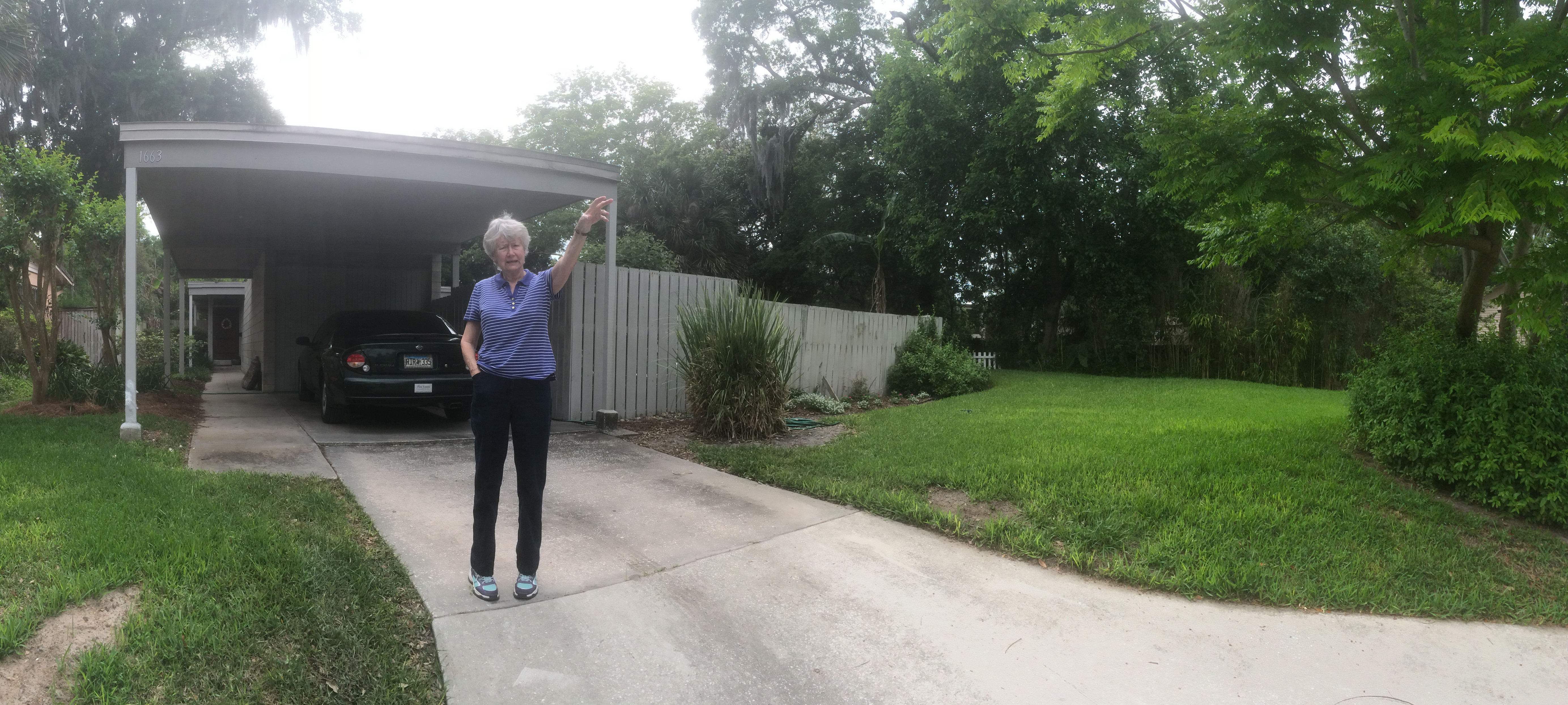 At the end of the driveway, I turned around with my iPhone to take a photo. Just as I was about to push the button, the front door opened and a woman in her 40’s wearing a cast on her leg looked at me with a confused look. As I hurried back to the door, I spoke: